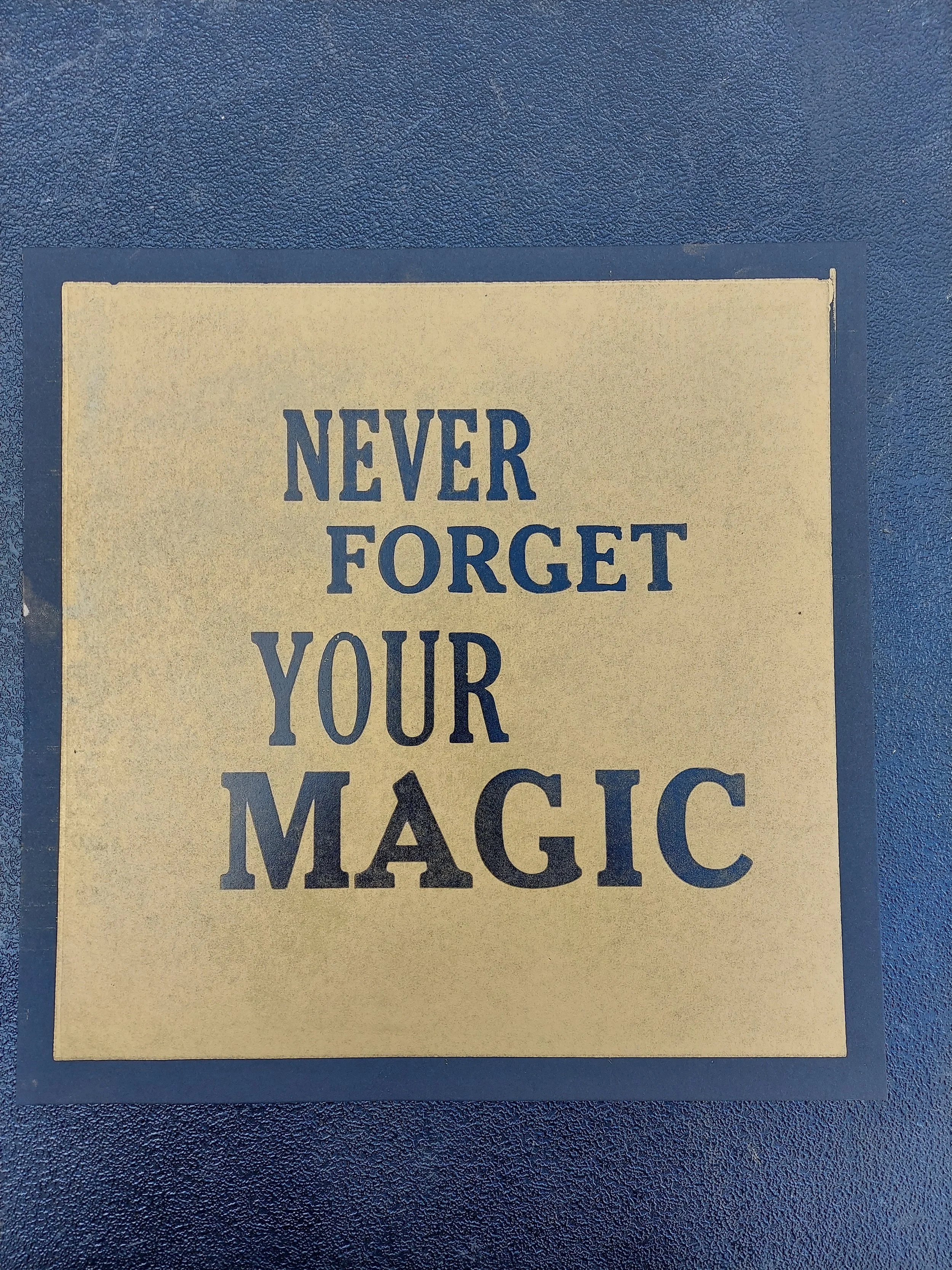 Never forget your magic. A sweet reminder for your walls. 12 ×12”. Green gradient printed on Curious Metallics Ice Gold paper- a shimmery/ glittery paper.